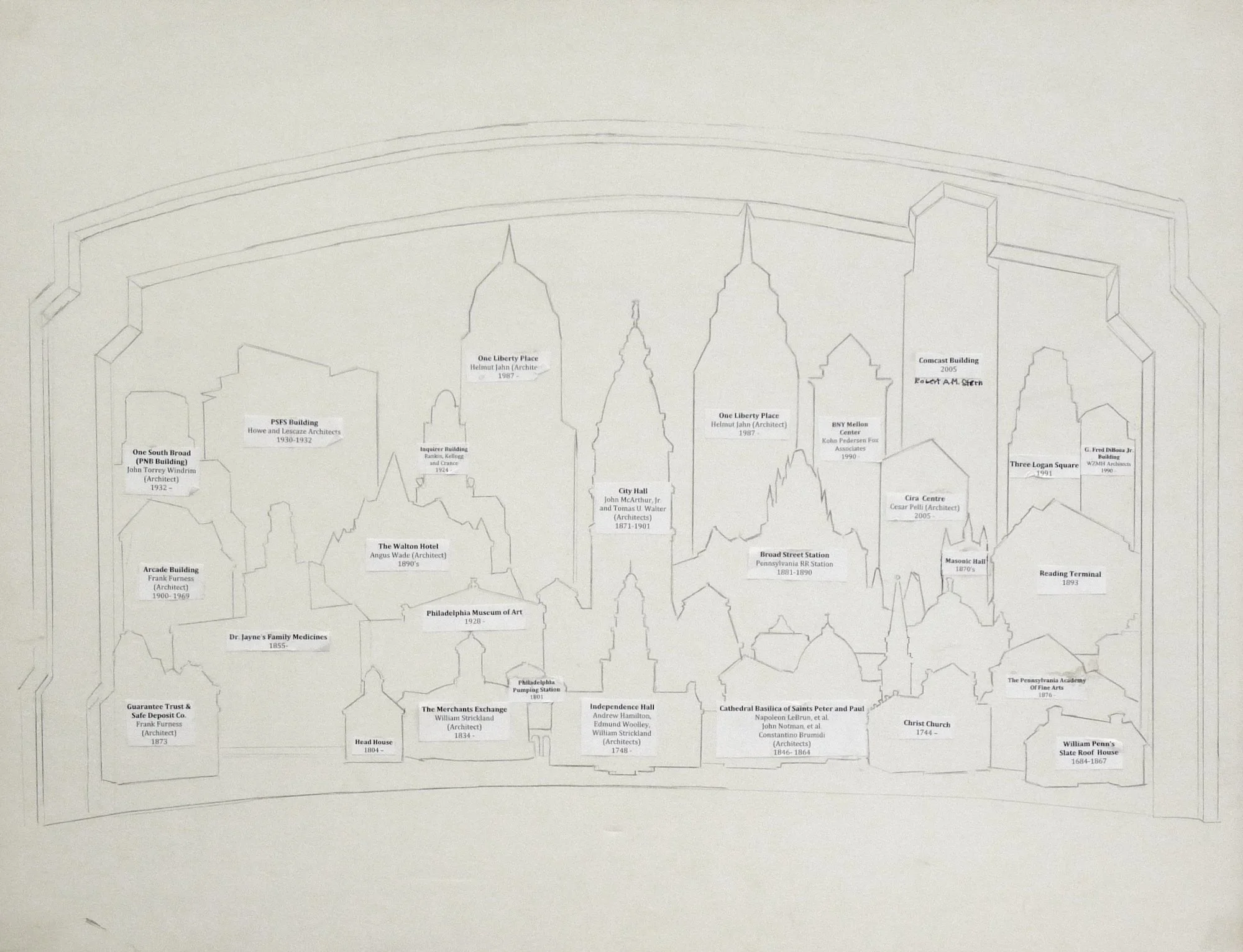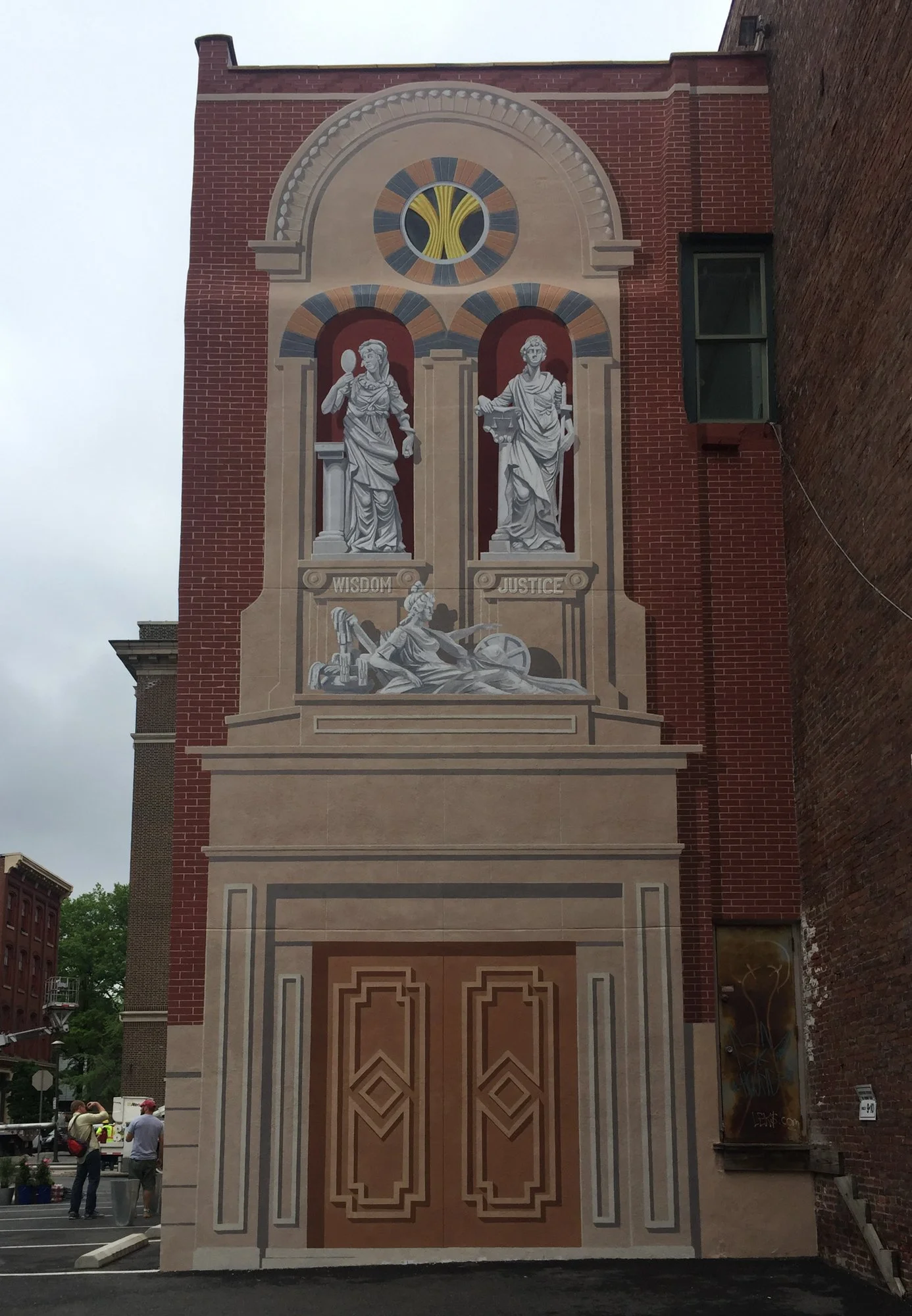 Reference to wooden sculptures of the “Allegory of the Waterworks” designed by William Rush in 1825.