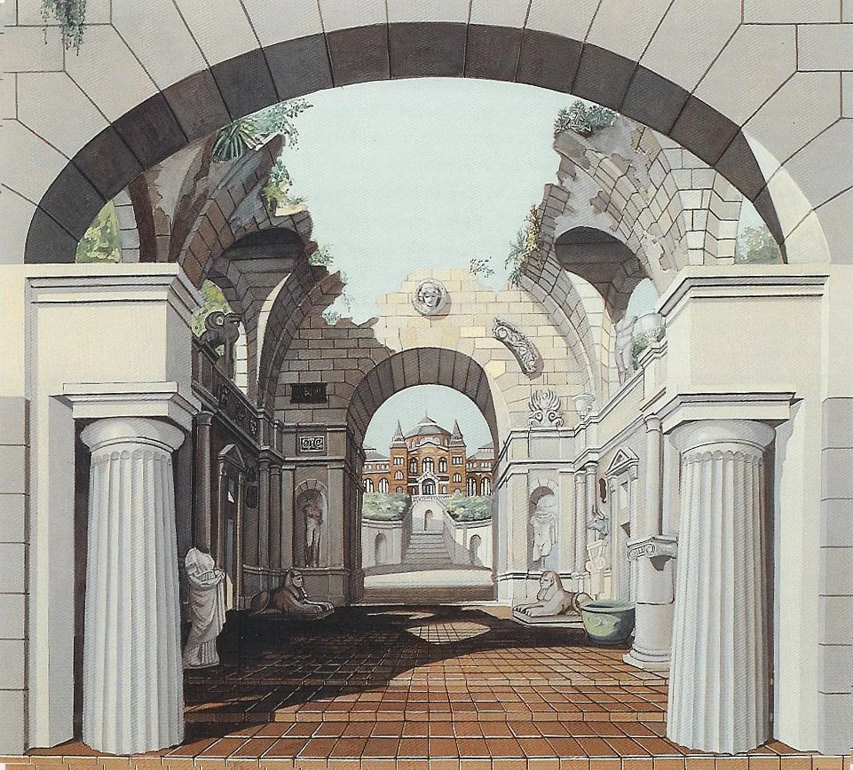 Ripley Center Complex mural depicting the Arts and Industries Building in the distance and the original Smithsonian building on the upper left.